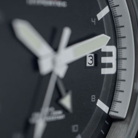SUPER カレンダー日付変更機能や軍用対応24時間GMTインジケータ付き。