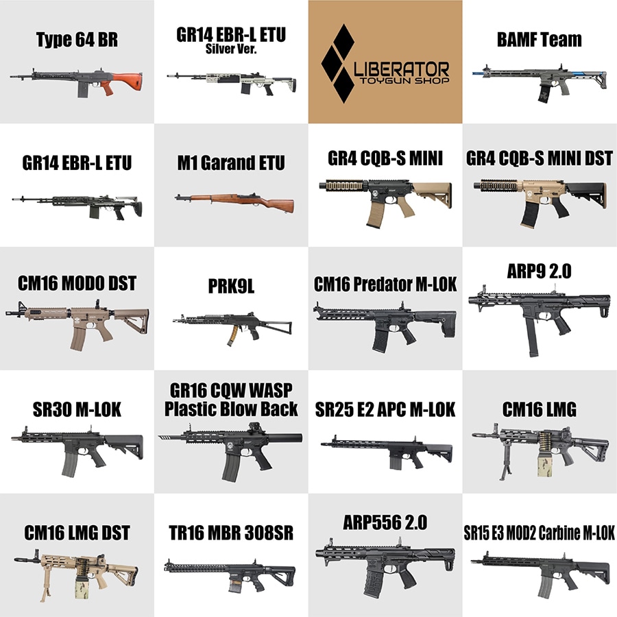 画像のラインナップの中から1本 or 1setをランダムにチョイスしちゃいます。必ず電動ガン本体は1本発送させていただきます。