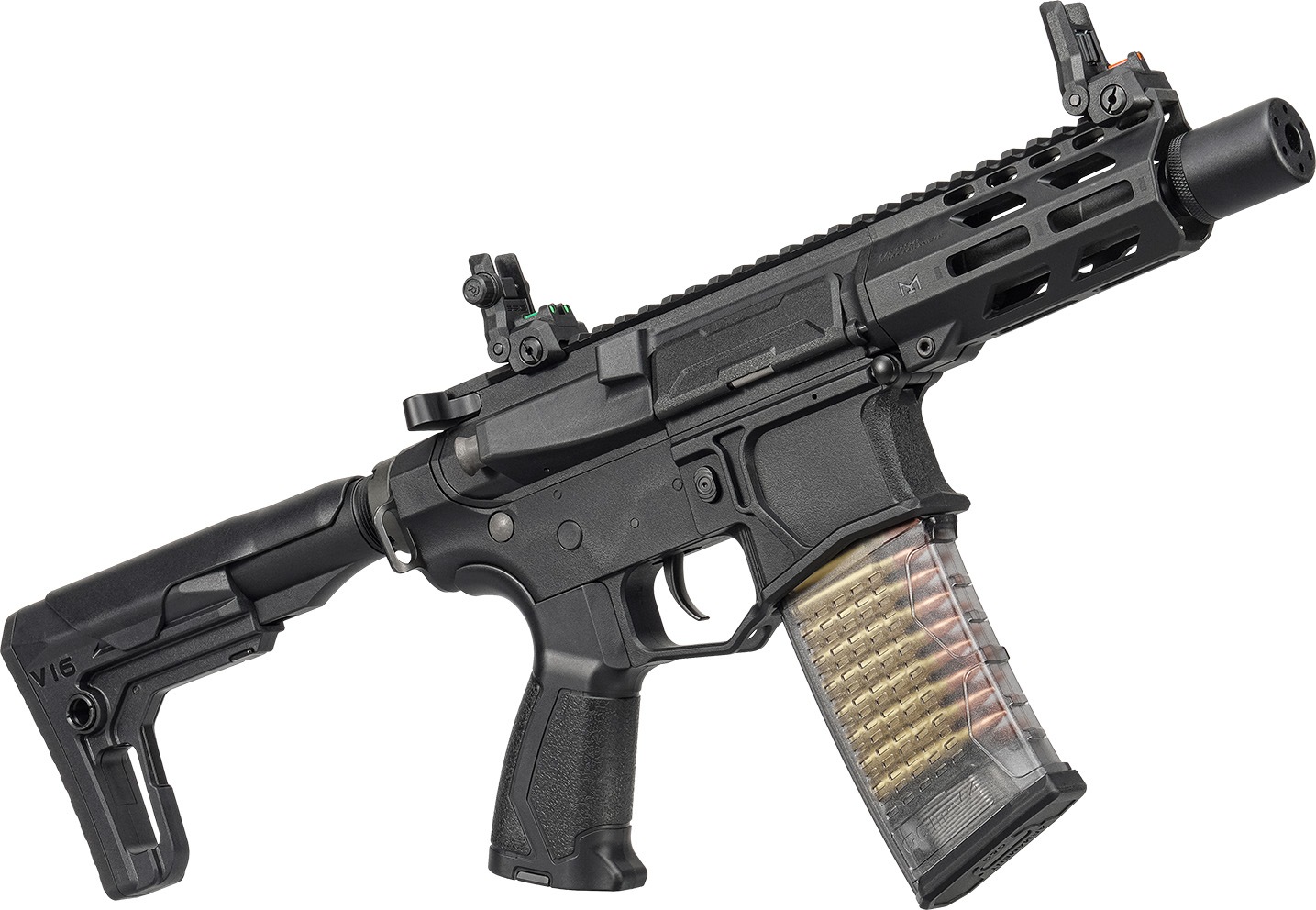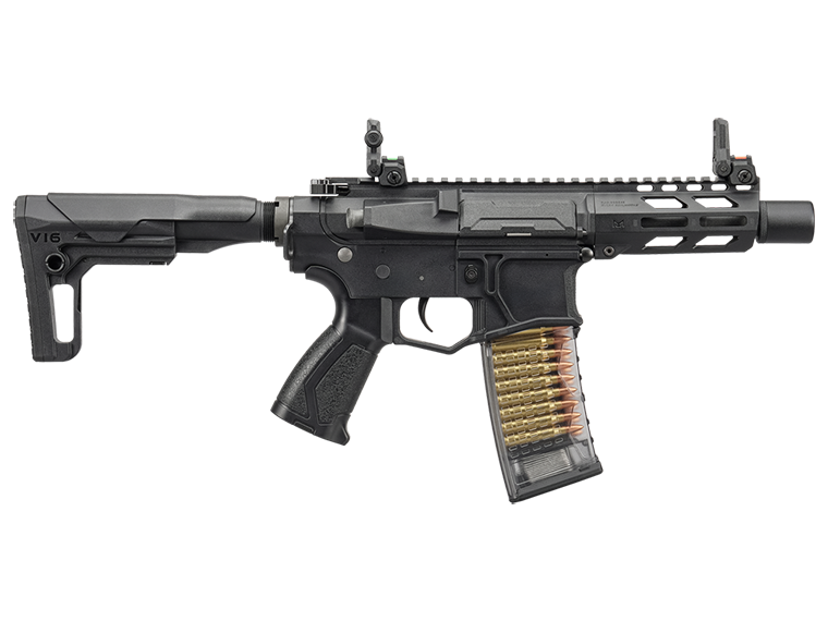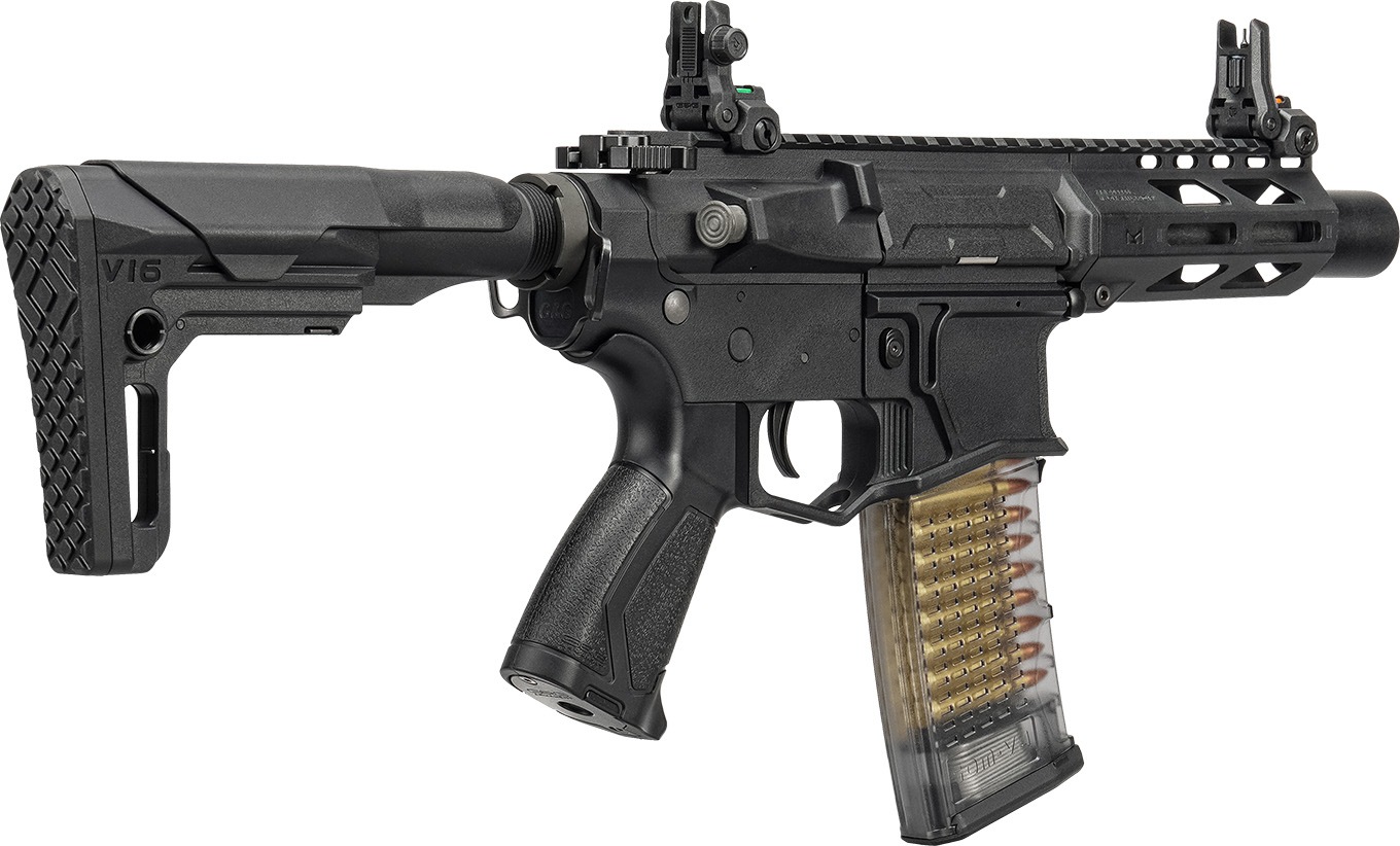 レスポンスの良い電子トリガーを搭載した軽量で超ショートなARライフルで、狭所で大活躍する事間違いなしのバチバチのサバイバルゲーム向けモデルです。